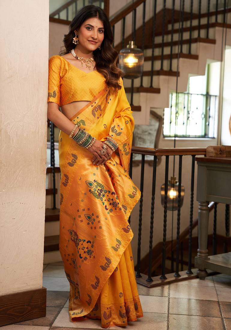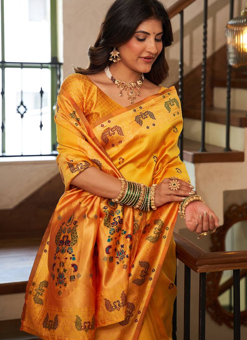 | Product Name | Women Orange Peacock Motifs Silk Blend Saree | |