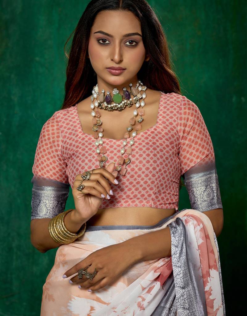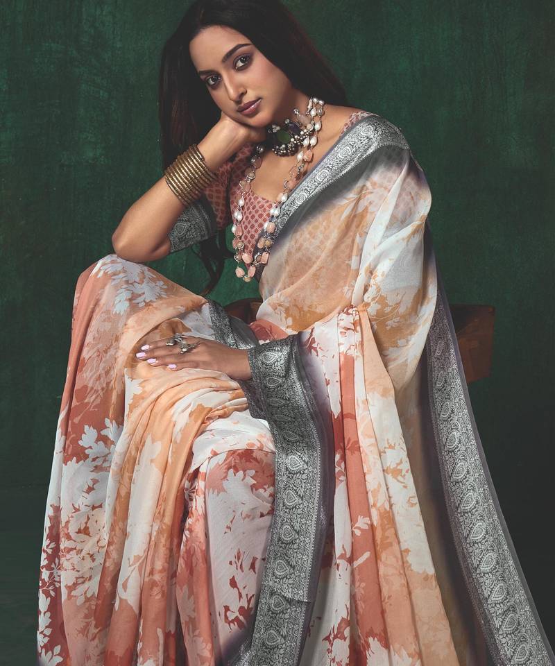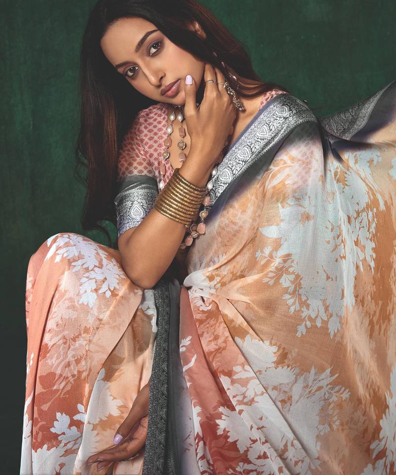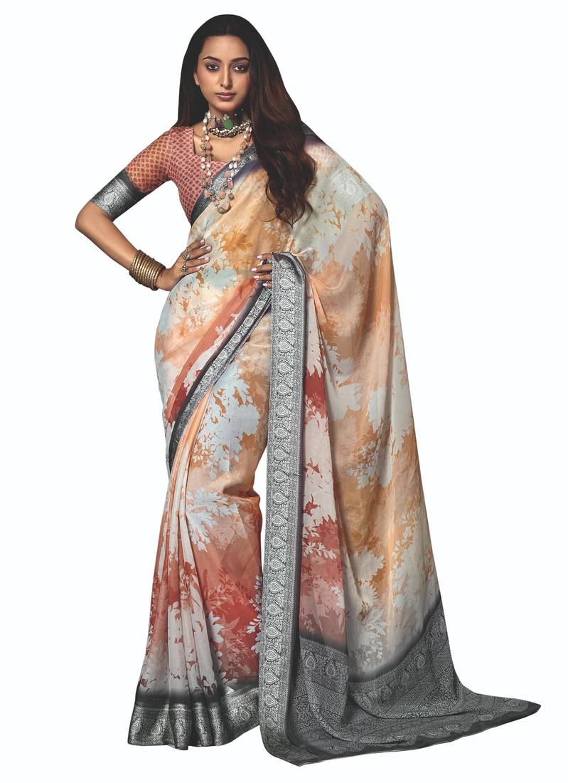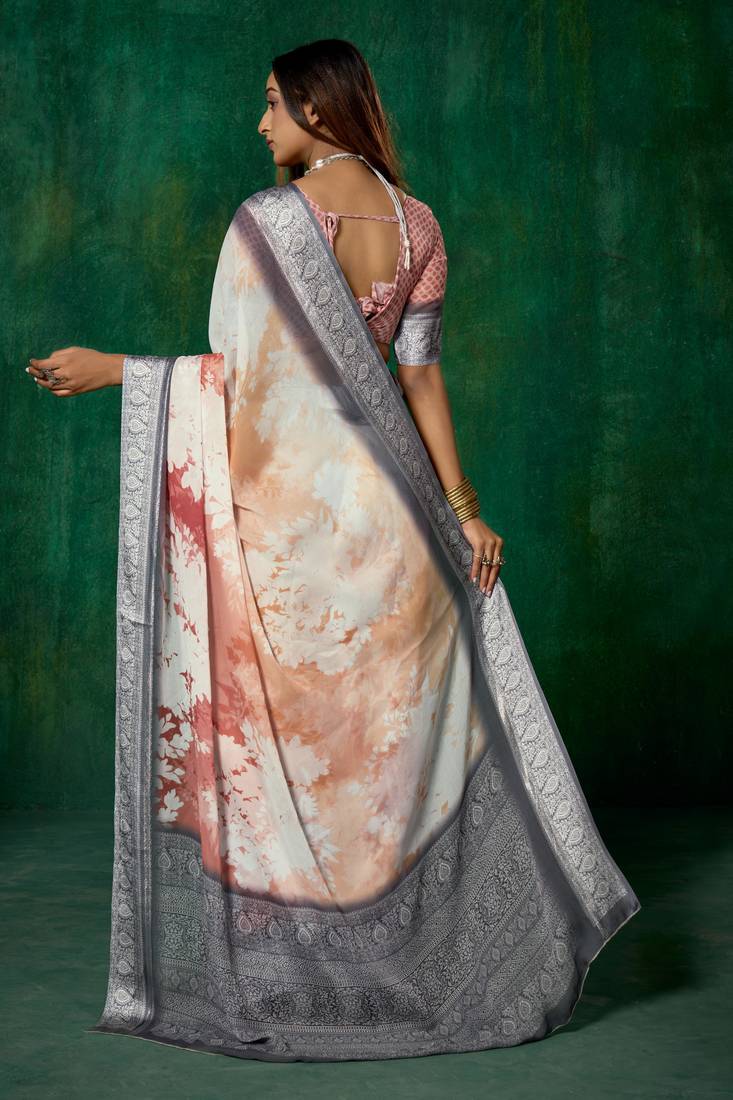 Product Name | Shaded Multi Color Faux Chiffon Silver Zari Border Work Saree | |