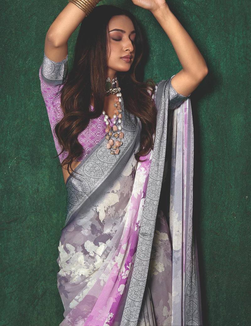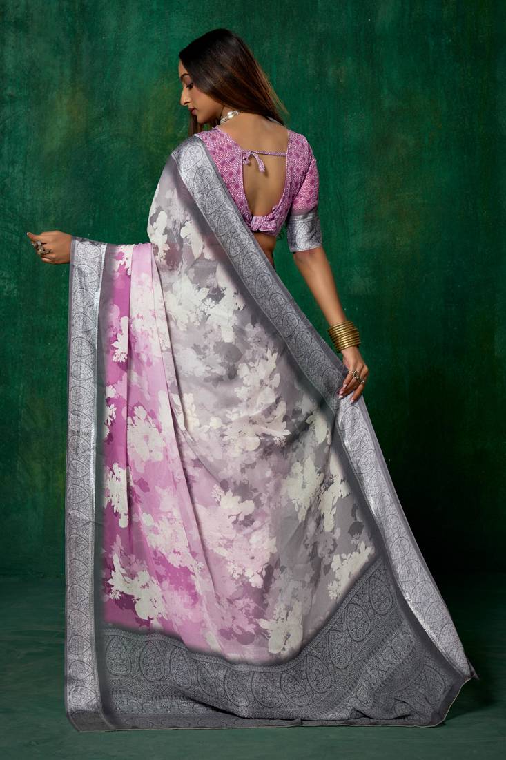 Product Name | Shaded Multi Color Faux Chiffon Silver Zari Border Work Saree | |