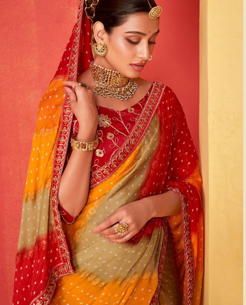 • | Saree | : | Color- Multicolor / Fabric- Faux Chiffon |