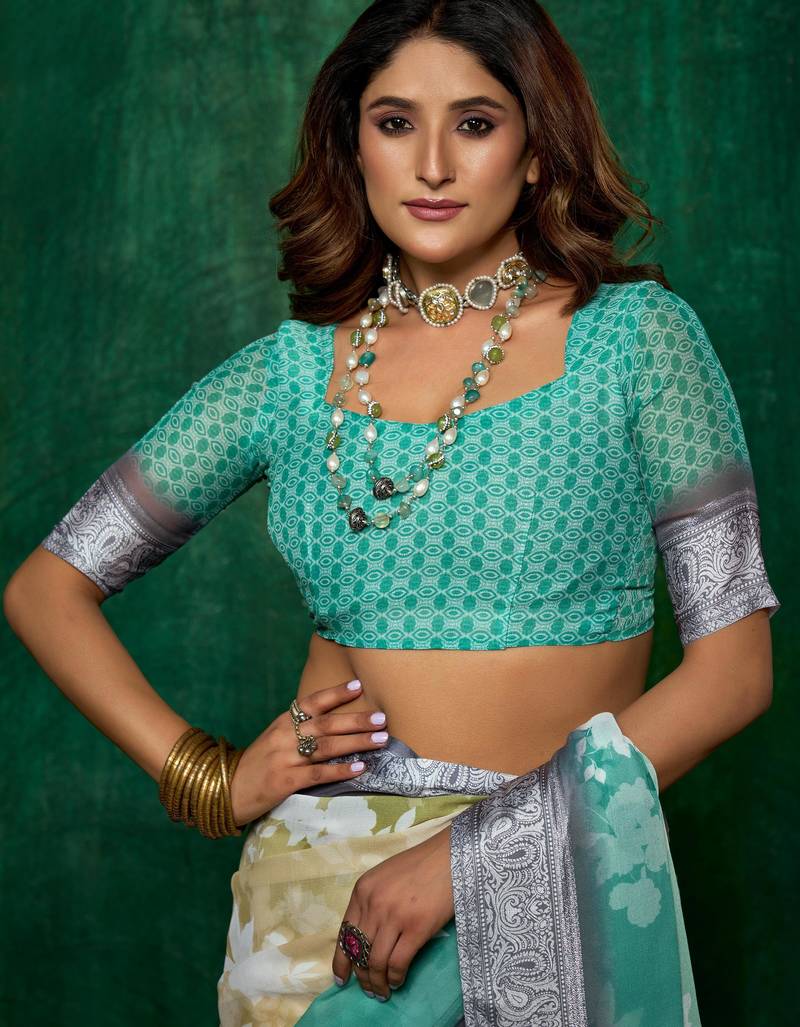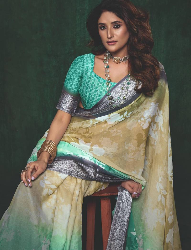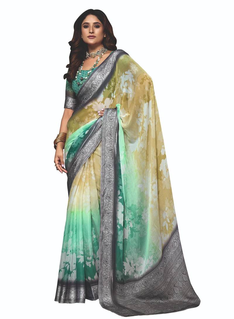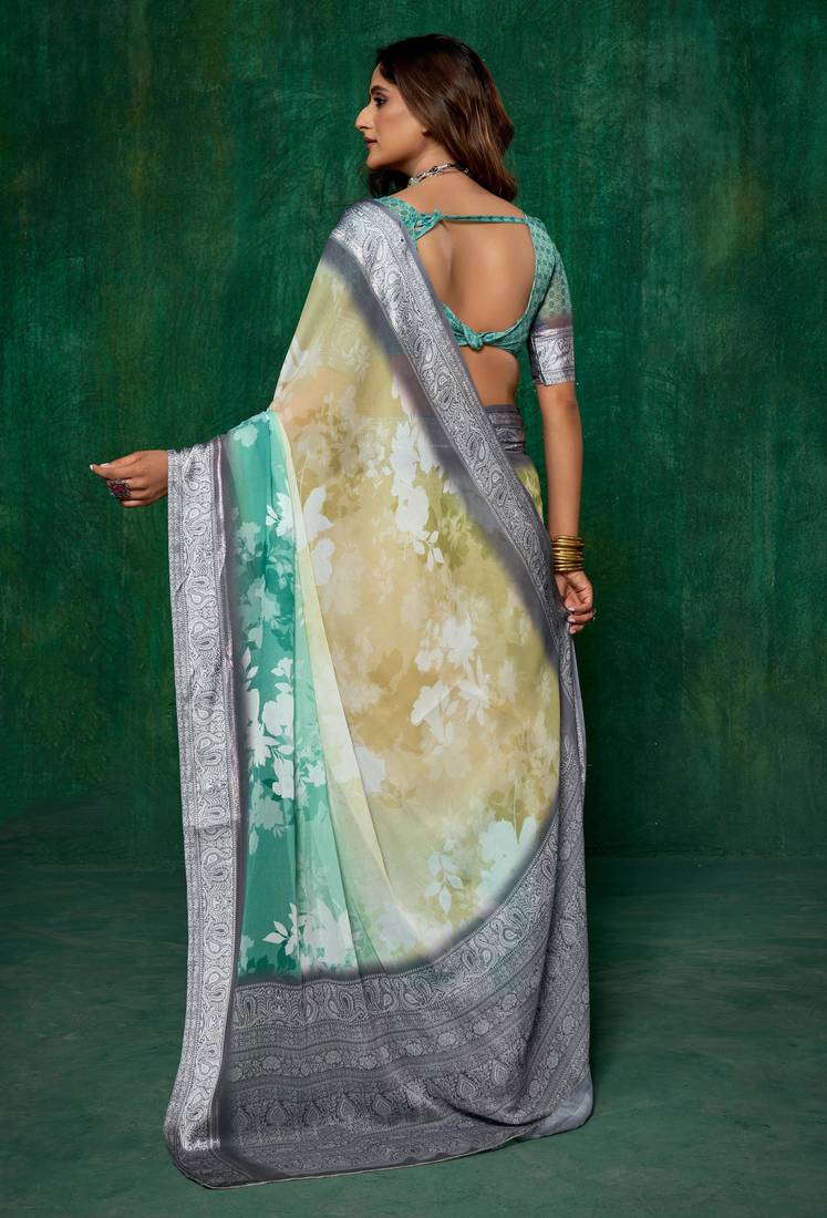 Product Name | Shaded Multi Color Faux Chiffon Silver Zari Border Work Saree | |