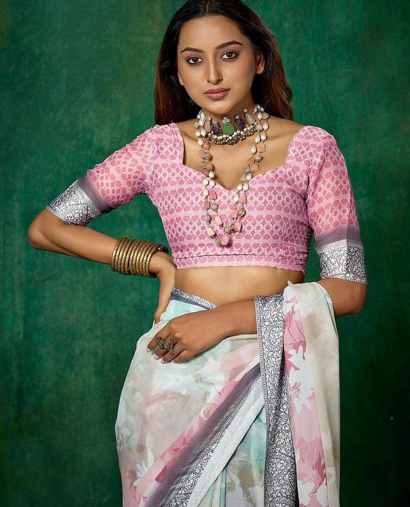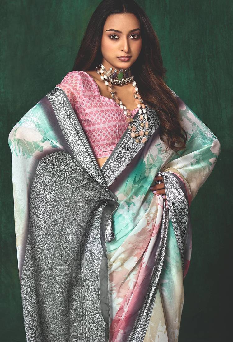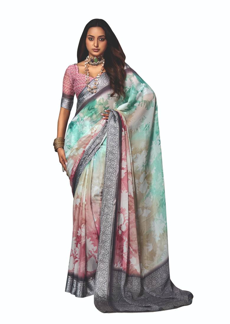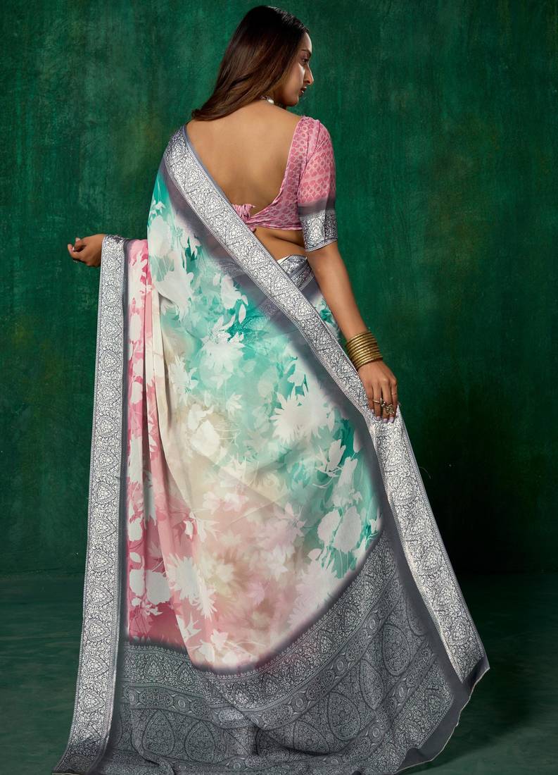 Product Name | Shaded Multi Color Faux Chiffon Silver Zari Border Work Saree | |