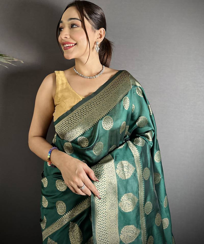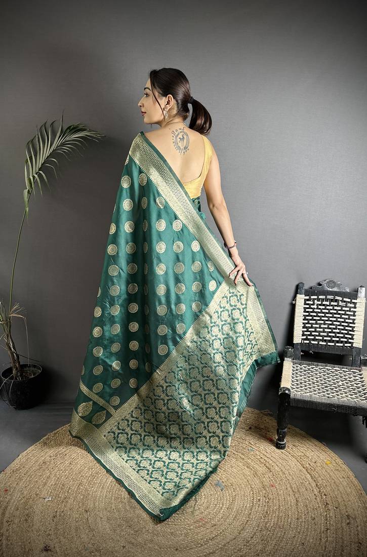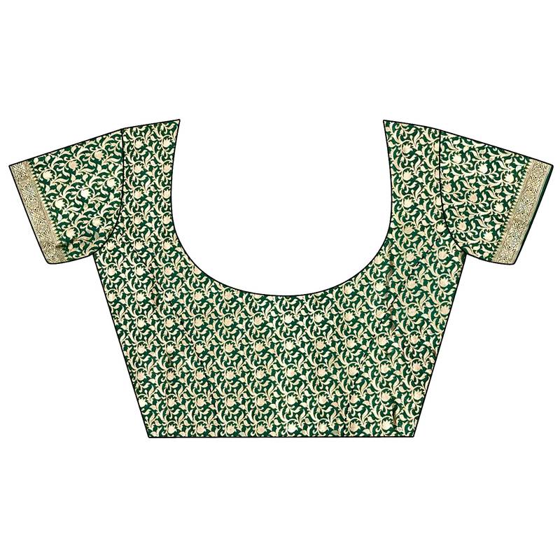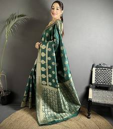 Green soft banarasi silk blend green jacquard weaving saree with unstitched blouse