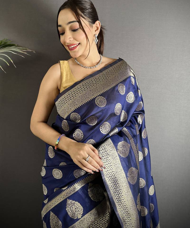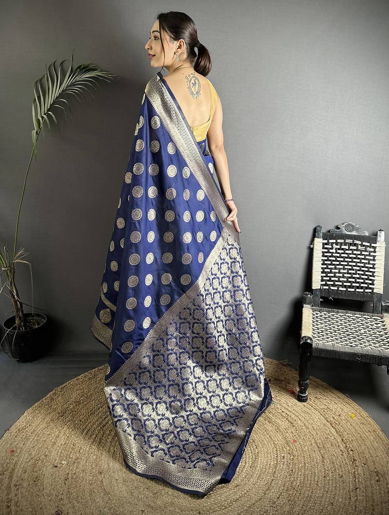 NavyBlue soft banarasi silk blend navy blue jacquard weaving saree with unstitched blouse