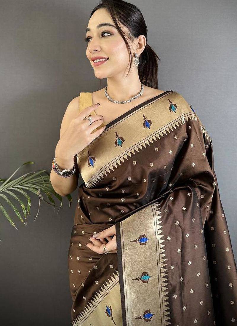 | Product Name | Soft Lichi Art Silk Brown Peacock & Floral Motifs Kanchipuram Saree | |