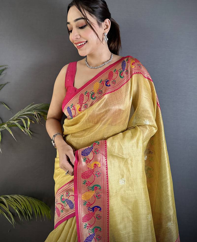 | Product Name | Zari Weaving Golden Yellow Tissue Paithani Saree | |