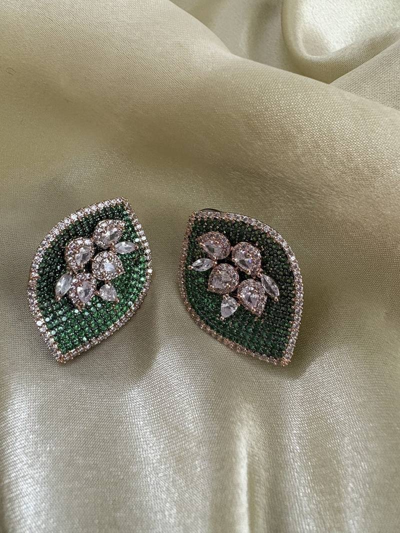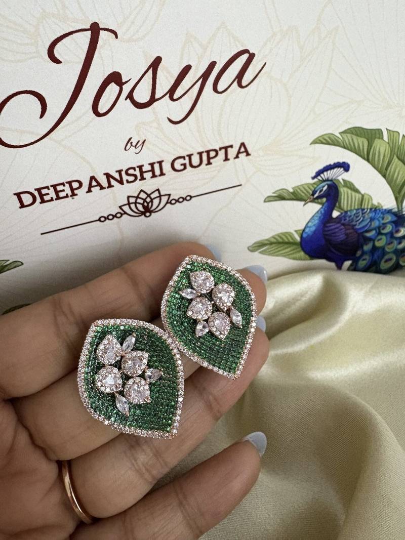 Product Name Gold Alloy Amelia Stud Earrings Emerald