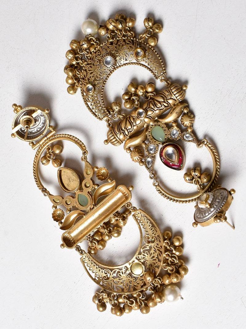 Product Name Gold Alloy Chaitra Oversized Fusion Earrings