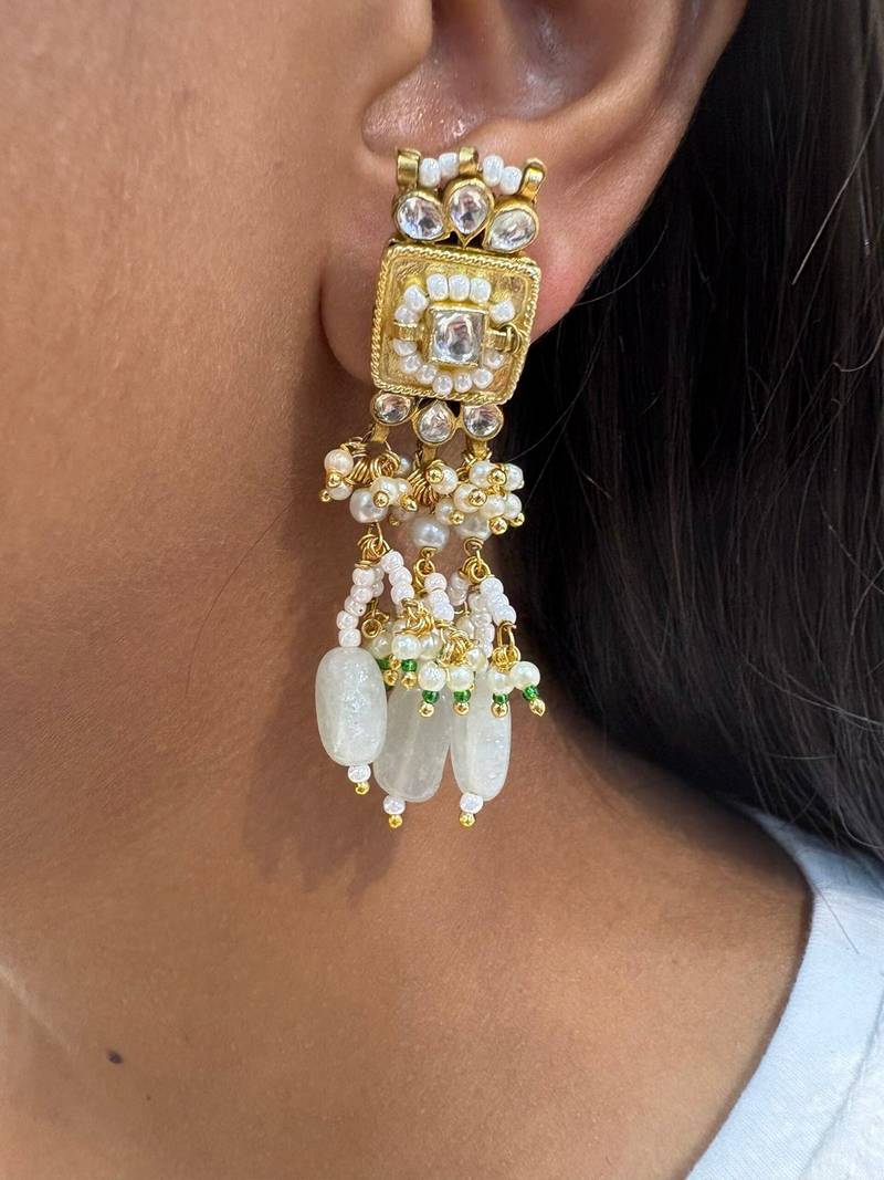 Gold alloy sri kundan earrings