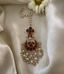 | Product Description | Experience The Charm Of Traditional Craftsmanship With This Meticulously Handcrafted Kundan Maang Tikka. The Intricate Kundan Work Beautifully Complements The Vibrant Pink, Green And White Stones, Creating A Captivating Play Of Color And Sparkle. Delicate Pearl Accents Dangling Add A Touch Of Classic Elegance, Making This Maang Tikka A True Statement Piece. Base Material: Alloy Includes: One Maangtikka &Nbsp; |