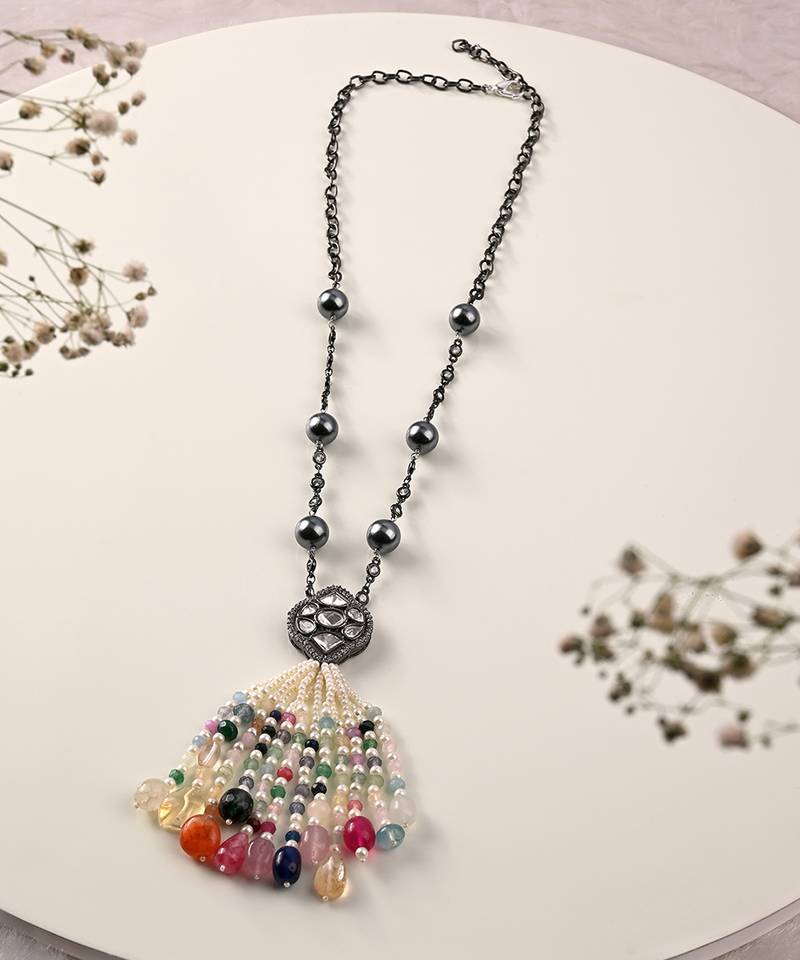 | Product Description | This Designer Dainty Necklace Is Made With Multi Colour Pearls & Rich Semi Precious Stones & Kundan Polki & Antique Polish Chain. Ideal For Any Occasion On Your Western Or Indian Attire.Every Artistic Piece From Joules By Radhika Is Made With Real Semi Precious Stones Only, Giving It A Regal Look & Feel. |