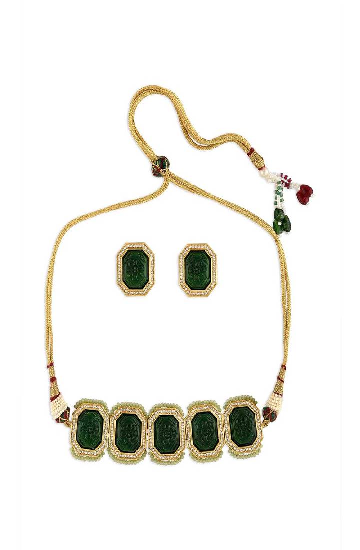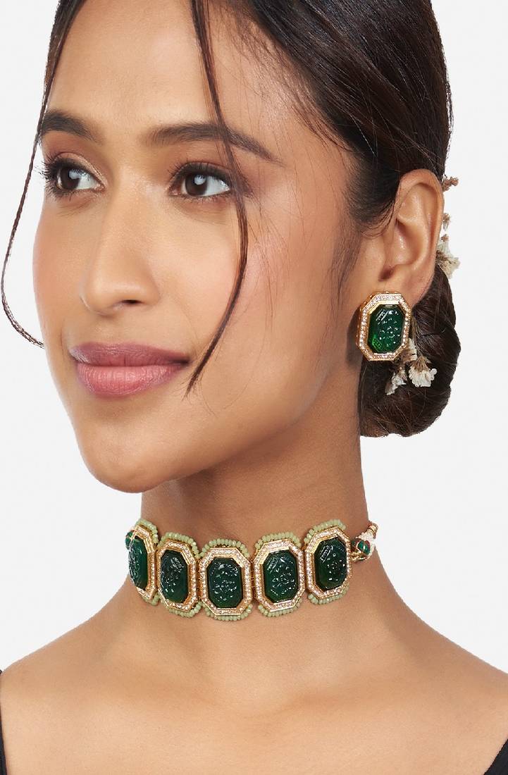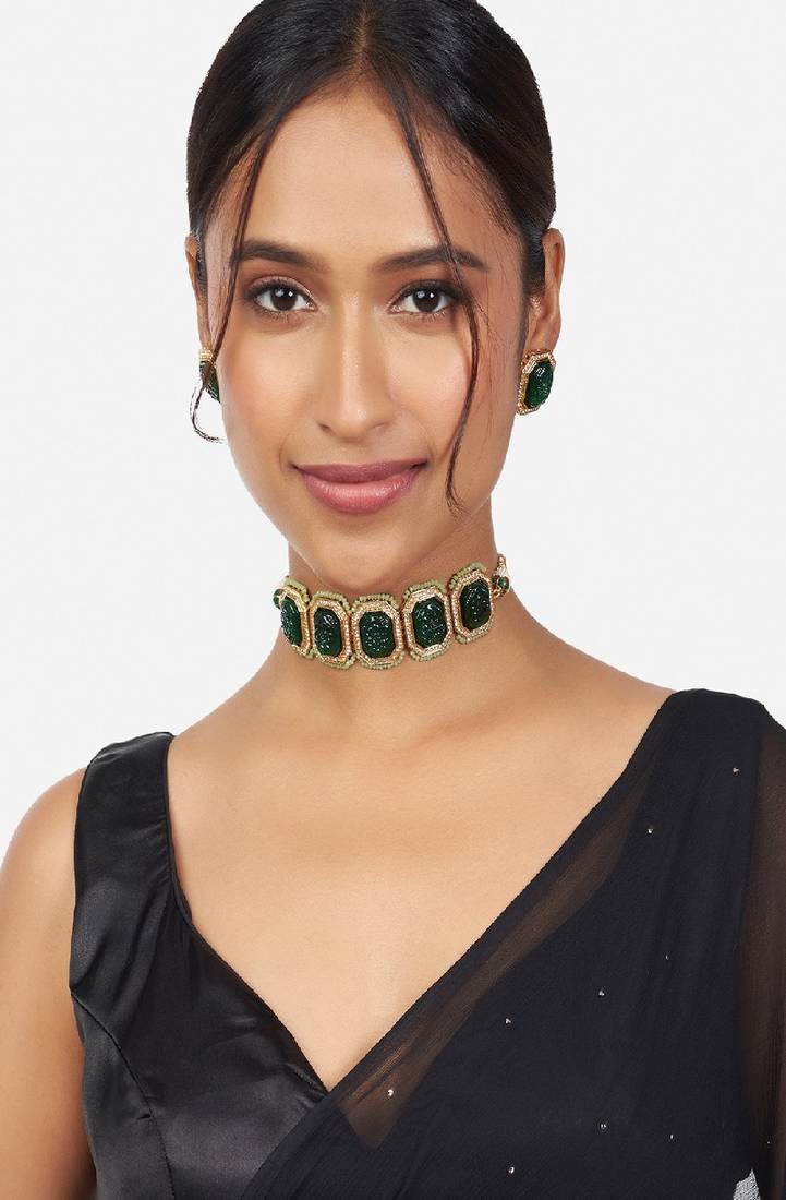 | Product Name | Gold Finish Green Choker Necklace And Earrings Set | |