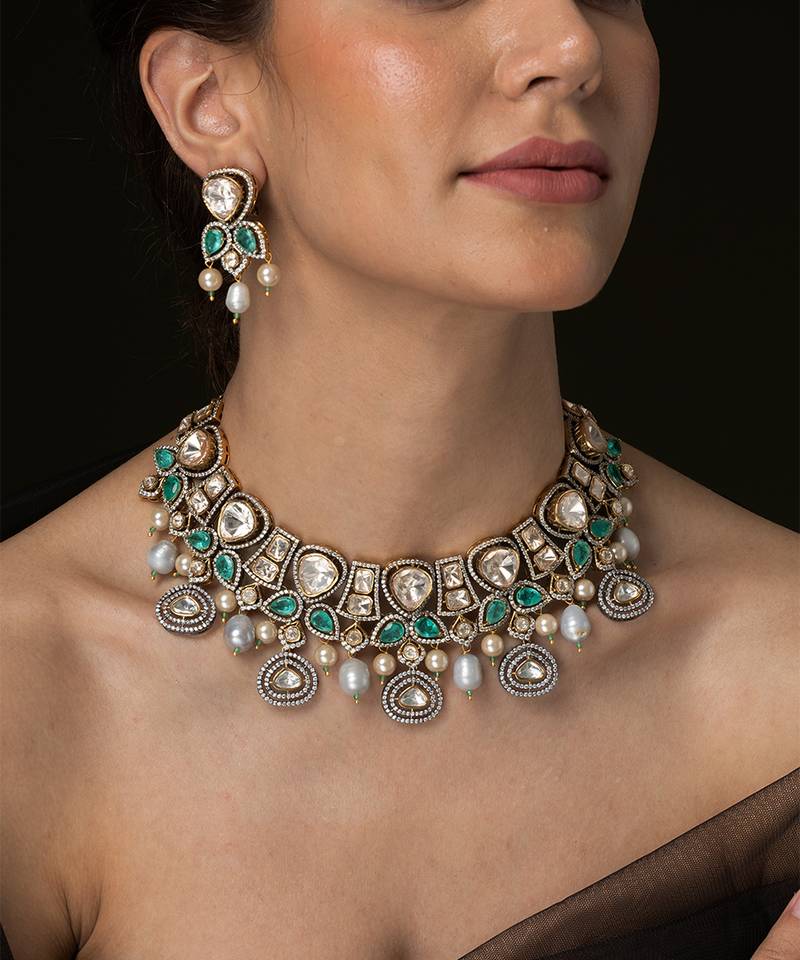 | Product Name | Gold Plated Kundan Green Stones Necklace Set | |