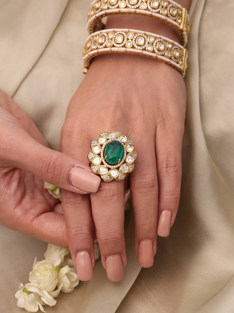 Product Name | Gold Plated Kundan Green Stone Ring | |