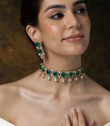 | Product Name | Gold Plated Kundan Green Stones Chocker Necklace Set | |