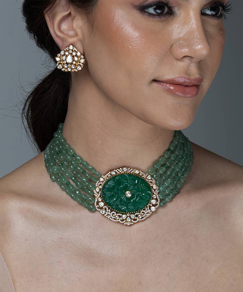 | Product Name | Gold Plated Kundan Green Stones Choker Necklace Set | |