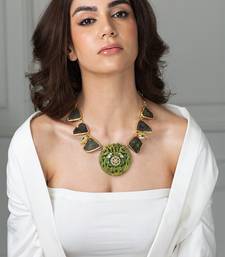 Gold plated kundan green stones necklace