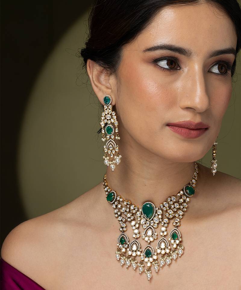 | Product Name | Gold Plated Kundan Green Stones Necklace Set | |
