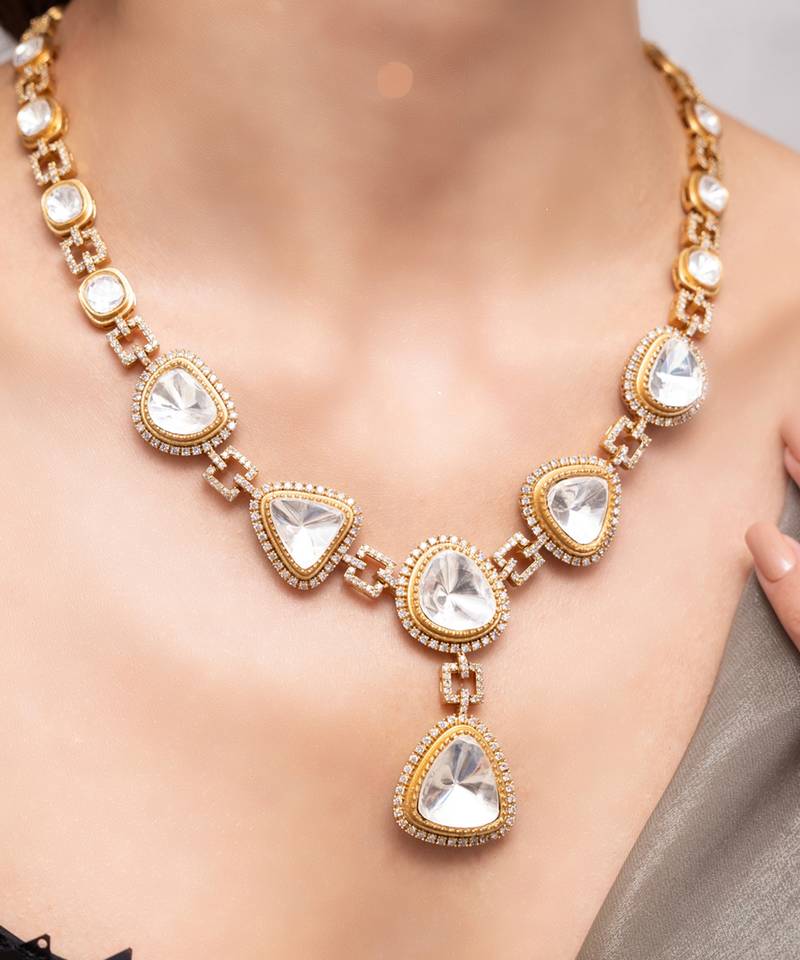 | Product Description | A Refined Gold Toned Necklace Set Featuring Disc Shaped Mirror Elements And Matching Earrings. Its Clean Yet Festive Aesthetic Makes It Ideal For Cocktail Nights, Fusion Outfits, And Modern Bridal Parties.