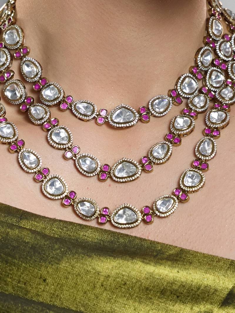 Product Description | Rajvanshi Layered Kundan Set With Red And White Stones, Paired With Matching Earrings. Perfect For Weddings, Festivals, And Ethnic Occasions. Adds Elegance And Grandeur To Any Outfit.