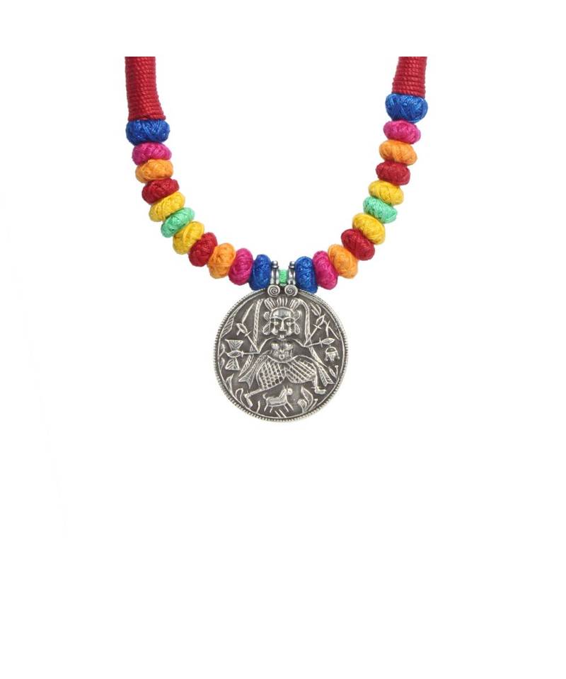 | Product Description | This Is Made Of Colored Thread, This Necklace Showcases The Art Of Rajasthani Jewelry, Which Is Hand Crafted By The Local Artisans. The Picture Of Maa Kali Has Been Engraved On This Silver Look Alike Pendant, Which Is A Perfect Example Of Strength And Confidence For Women. So A Perfect Antique Piece Of Jewelry For Them.