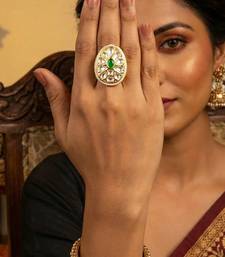Product Name Teardrop Kundan Finger Ring With Multi Center Stone High Gold Finish For Women And Girls
