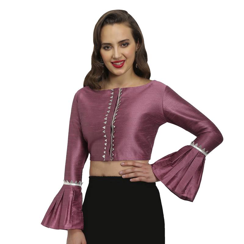 | Product Description | This Pleated Sleeve Blouse Top Will Be A Versatile Addition To The Wardrobe. Perfect To Be Paired Up With A Silver, Black, Grey Saree, A Maxi Skirt Or Jacquard Pants.Boat Neck. Full Sleeves With Pleats On The Cuffs. Front Hook And Eye Closure. Silver Lace On Sleeves And Placket. Non Padded. Actual Colors May Slightly Vary Due To Photographic Effects.Dry Clean Only. |