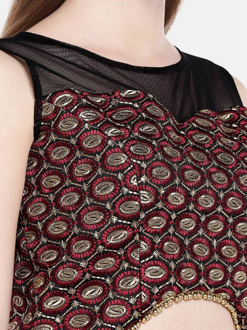 | Product Name | Maroon Padded Net Multi Head Embroidery Blouse | |