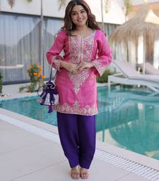 Baby pink embroidered viscose designer kurta set with batwa stitched