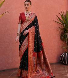 Black paithani silk zari woven saree with blouse
