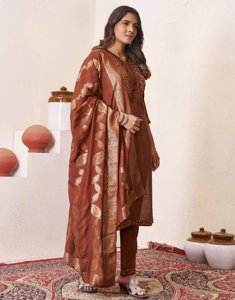 | Product Name | Brown Embroidered Roman Silk Kurta Set With Dupatta | |