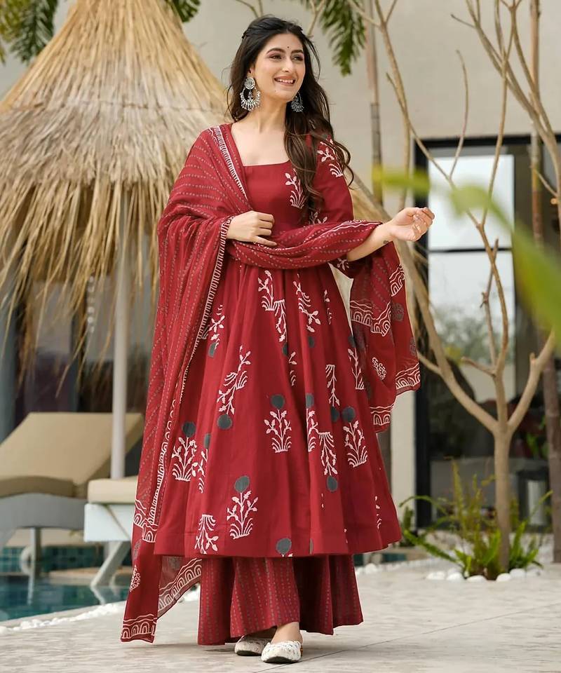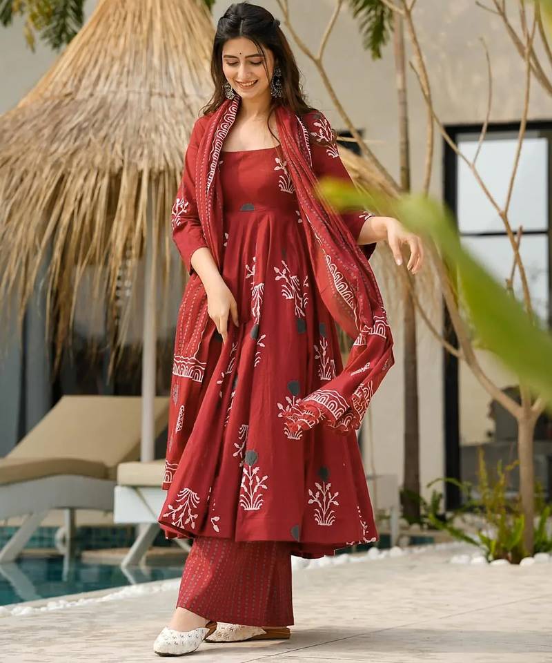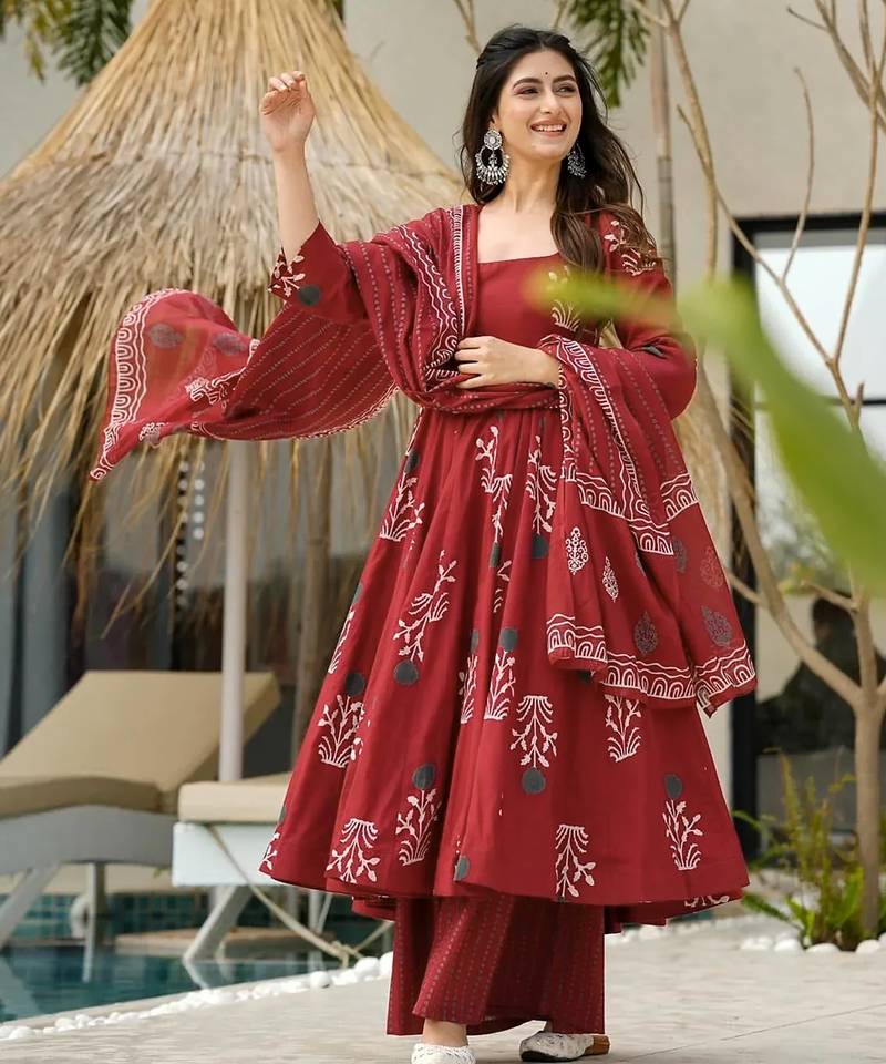 | Product Name | Maroon Digital Printed Mal Cotton Anarkali Set With Dupatta | |