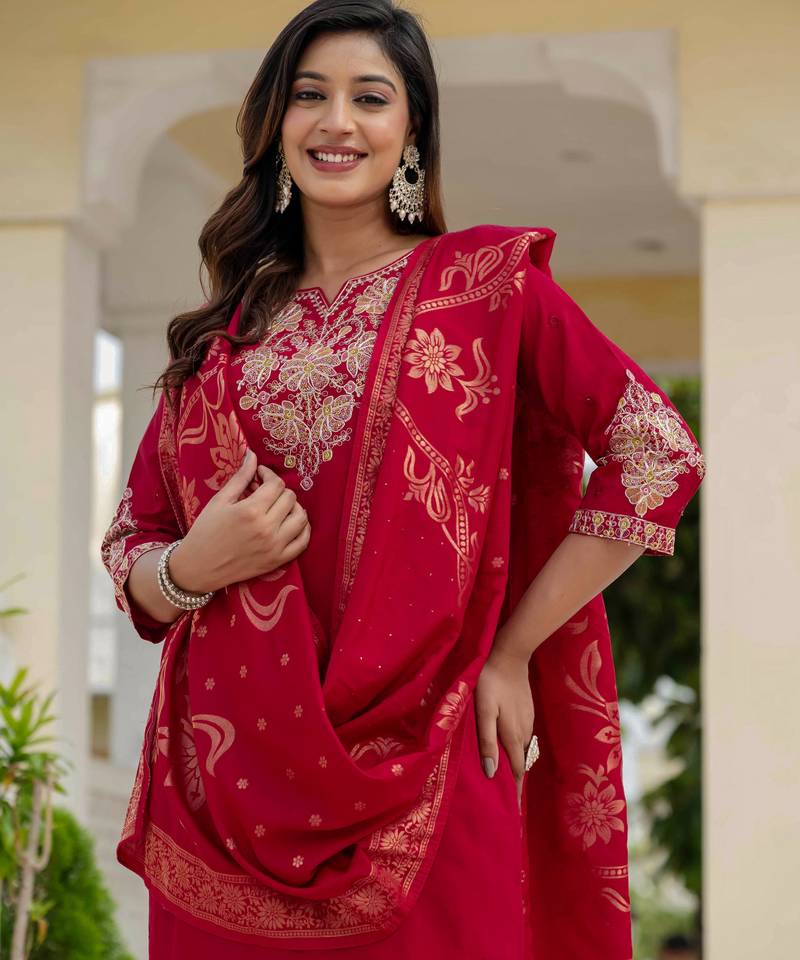 | Product Name | Maroon Embroidered Roman Silk Kurta Set With Dupatta | |