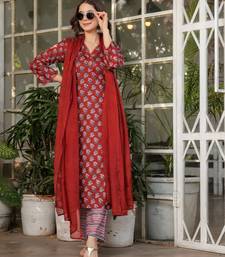Maroon floral printed cotton kurta set with dupatta