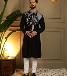 | Product Name | Men's Black Viscose Silk Sequins Embroidered Kurta With Pajama Set | |