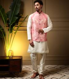 | Product Name | Men's Pink Slub Silk Jacquard 3d Weaving Kurta Set With Nehru Jacket | |