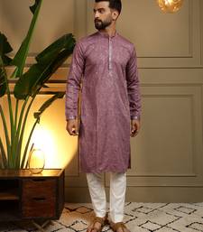 Product Name Men's Wine Khadi Cotton Mirror Embroidered Kurta With Pajama Set