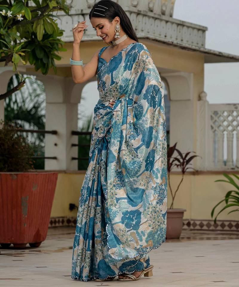 | Product Name | Morpich Chinon Digital Print With Mirror Saree With Blouse | |