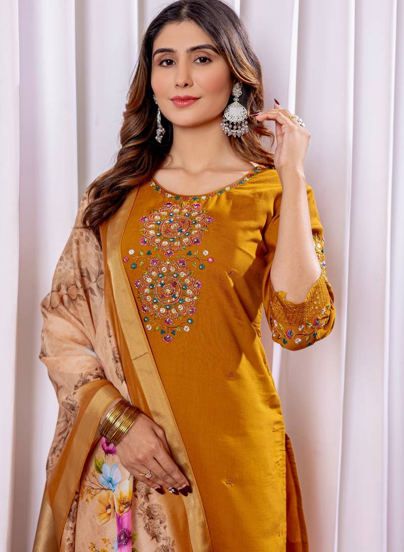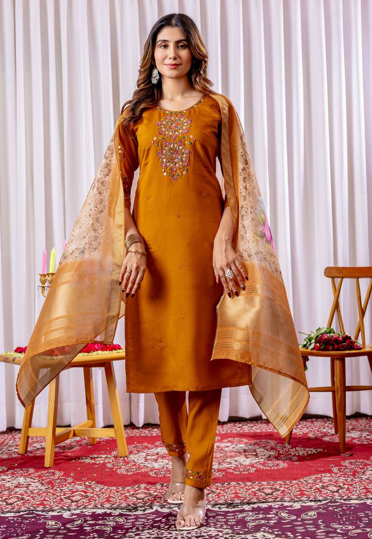 | Product Name | Mustard Embroidered Viscose Silk Kurta Set With Dupatta | |