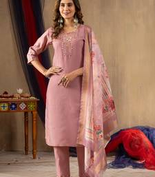 Onion pink embroidered shimmer gold silk kurta set with dupatta stitched