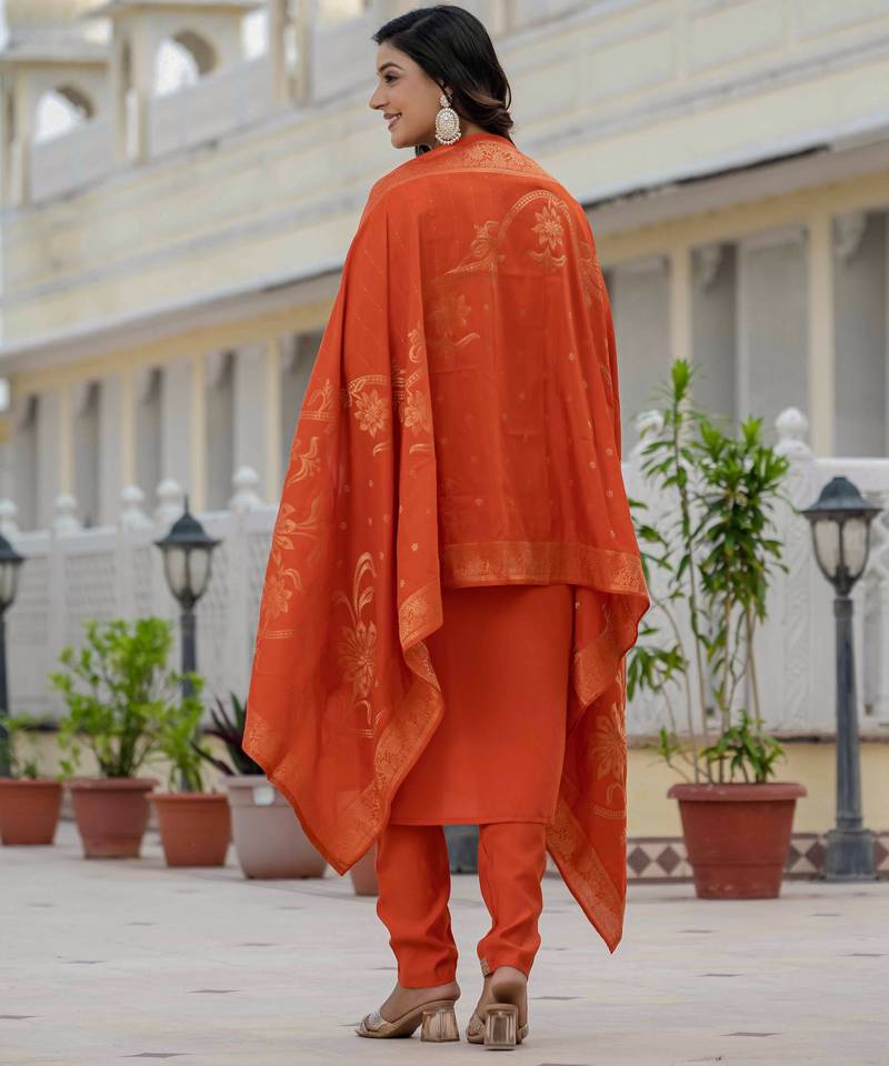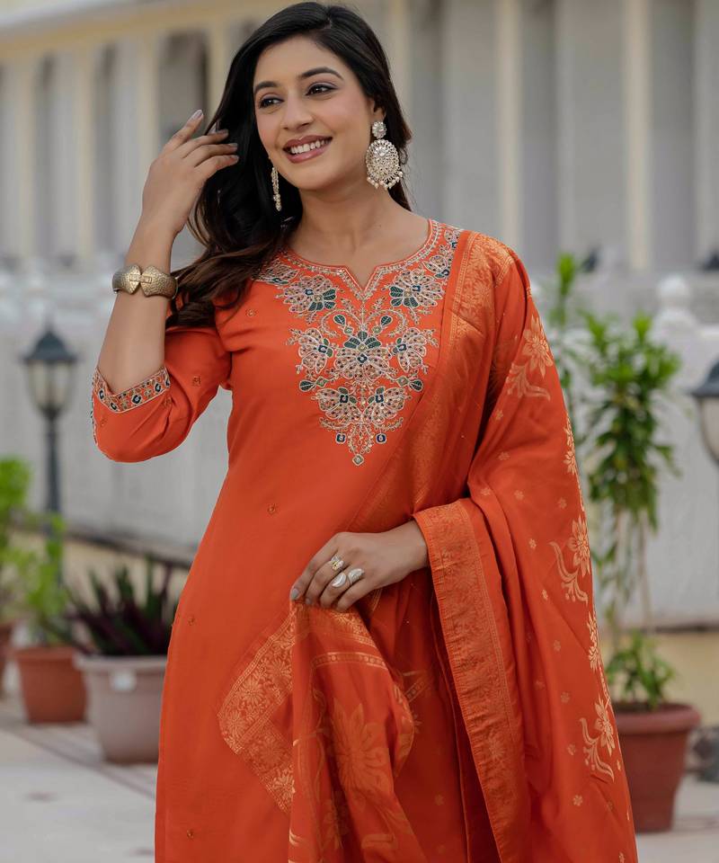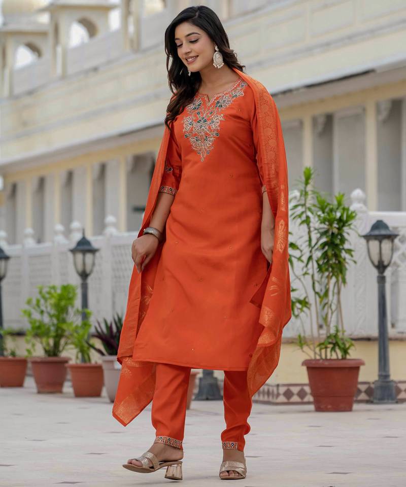| Product Name | Orange Embroidered Roman Silk Kurta Set With Dupatta | |