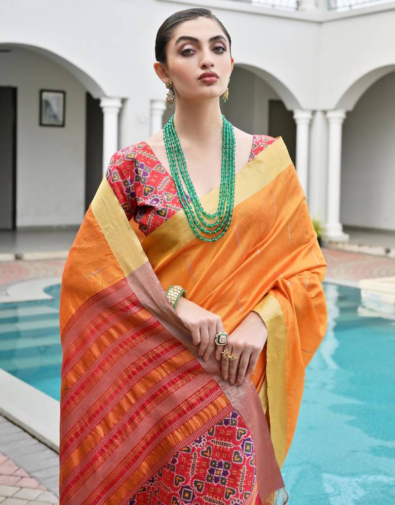 Orange khadi raw silk meena weaving patola saree with blouse