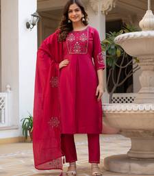 Pink embroidered viscose mango silk kurta set with dupatta stitched