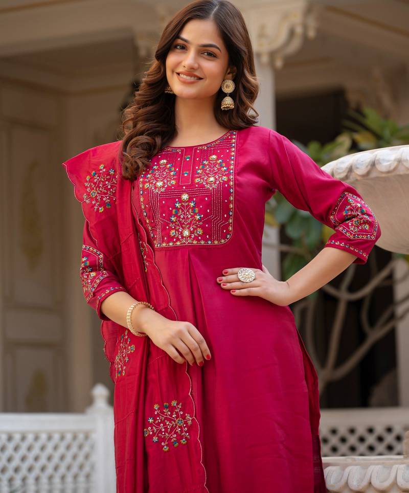 | Product Name | Pink Embroidered Viscose Mango Silk Kurta Set With Dupatta | |