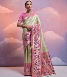 Pista green paithani silk zari woven saree with blouse