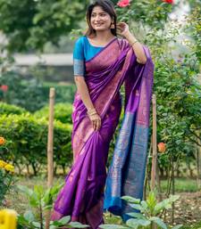 Purple soft banarasi silk zari woven saree with blouse