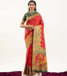 Red banarasi pashmina soft silk zari woven saree with blouse