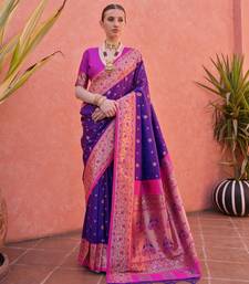 Royal blue paithani silk zari woven saree with blouse
