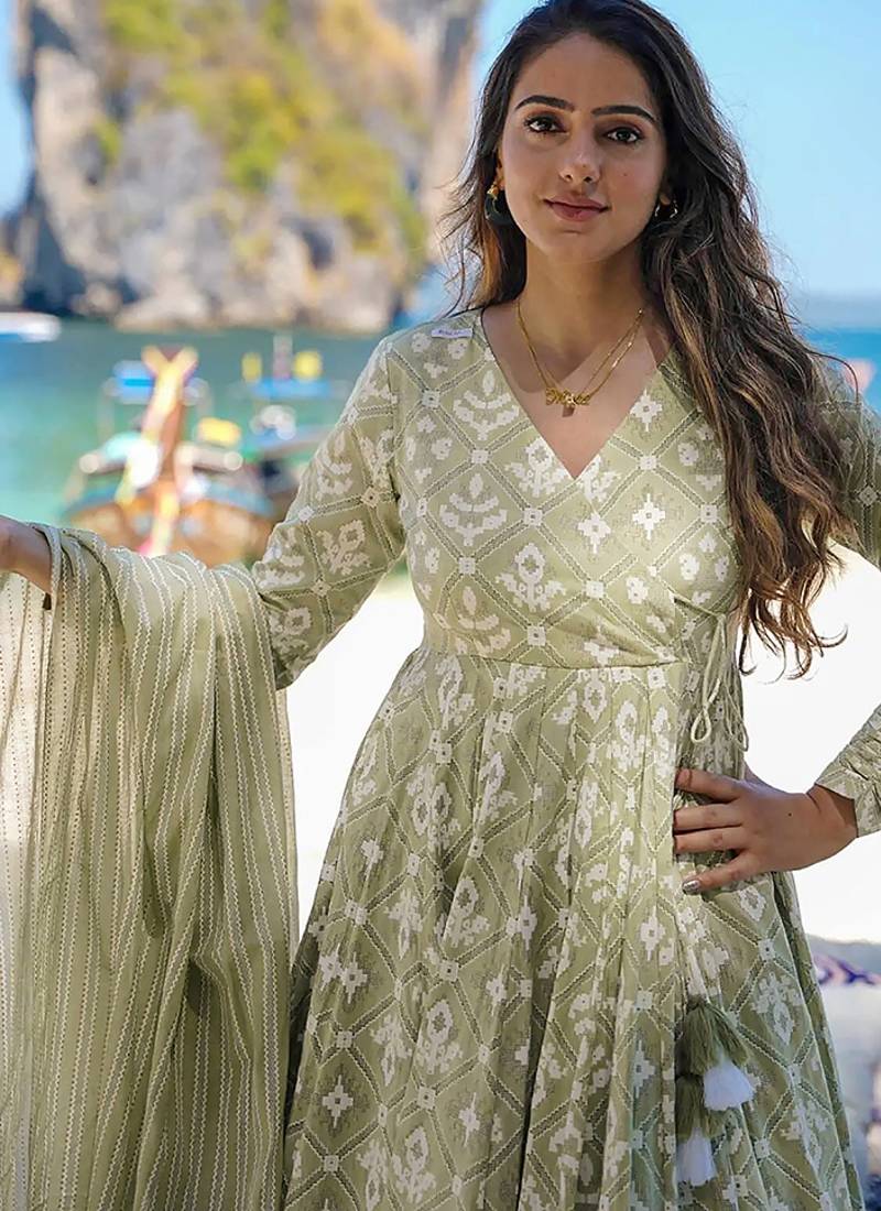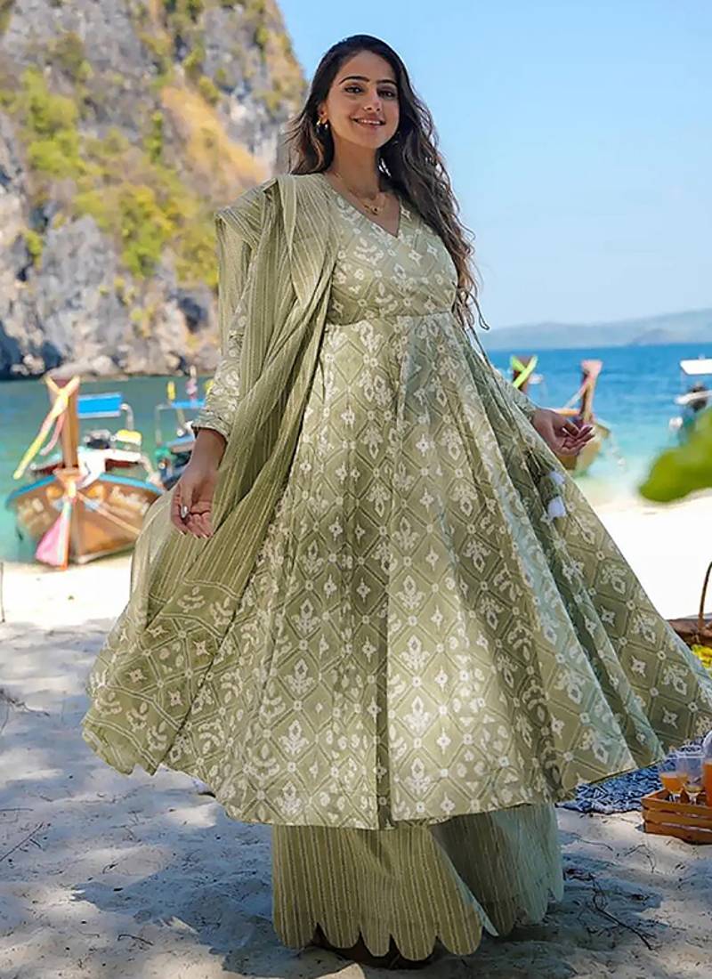 Product Name Sea Green Digital Printed Muslin Cotton Stitched Anarkali Set With Dupatta