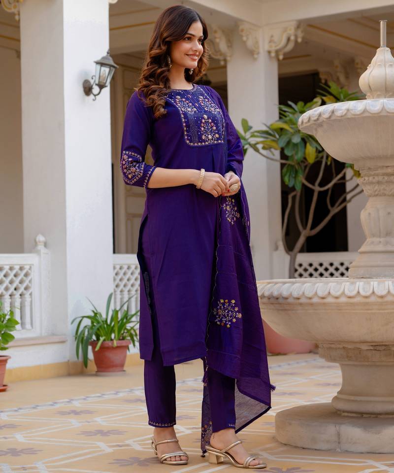 | Product Name | Violet Embroidered Viscose Mango Silk Kurta Set With Dupatta | |
